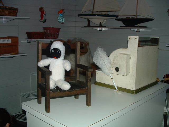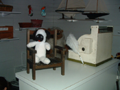 ![]() Dudley 2 Dudley seated in his favorite chair in his toy store, The Toy Keeper's Chest. |