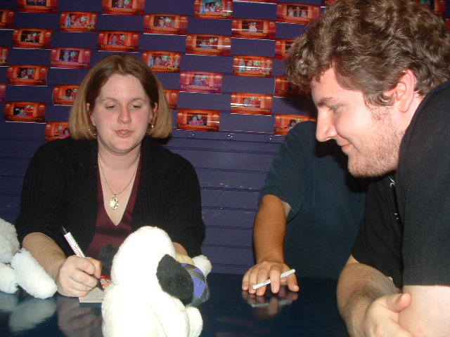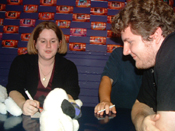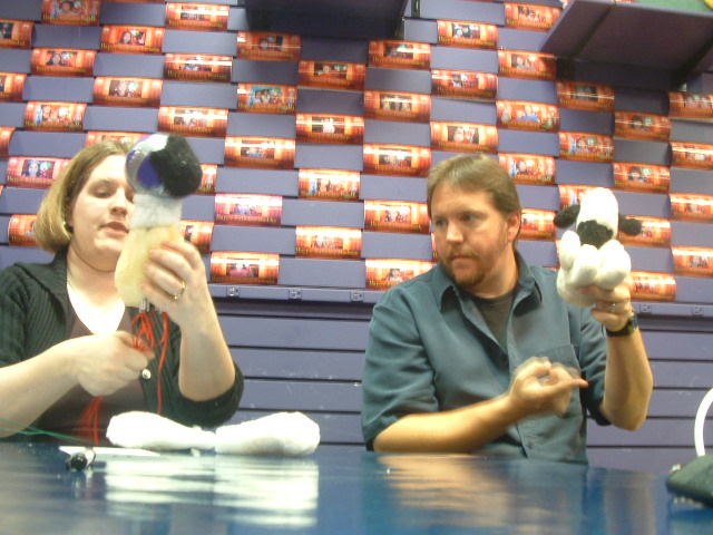 ![]() Dudley 1 Dudley's puppet maker Jamie Donmoyer (left) talks about the puppet, while director Patrick Algermissen (right) looks at the prototype. |