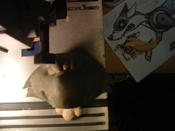 ![]() Silas 2 The clay model of Silas' head. This model was later molded in plaster, and a neoprene cast was made for use with the final puppet. |